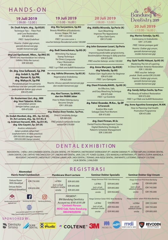 Harga Seminar Dokter Gigi :PDGI Kota Bandung (16 Maret s/d Mei 2019) Rp 695.000,-